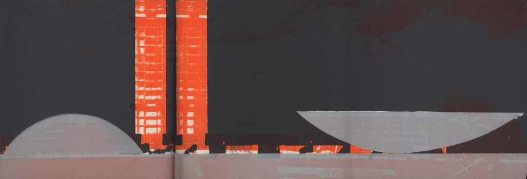 “Agora, em Doorway to Brasilia, tínhamos um livro completamente livre. (…). Vamos usar esse evento, dissemos, o fato de uma nova capital estar sendo construída, para vermos o que podemos tirar de lá e utilizar na tecnologia de impressão”, escreveu Aloisio Magalhães, em 1977, sobre o processo de criação deste livro ao lado do designer Eugene Feldman (1921-1975). Em Doorway to Brasilia, as imagens fotográficas originais foram trabalhadas graficamente no limite do seu reconhecimento, proporcionando, a um só tempo, a visão da capital em construção e a percepção de novas formas de representação gráfica.