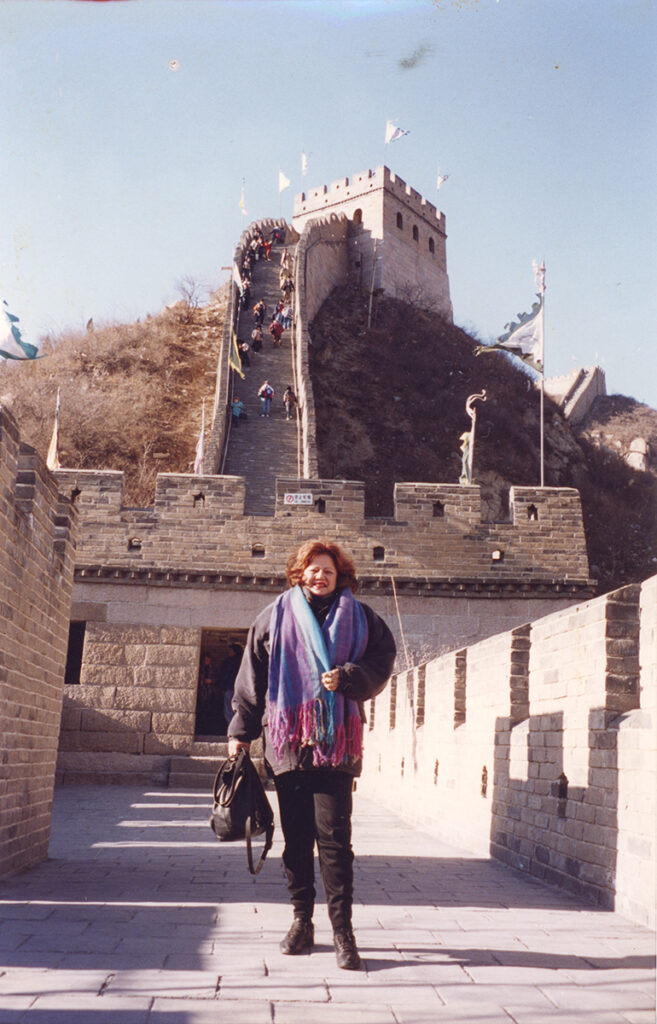 Ana Mae Barbosa na Muralha da China, durante viagem ao congresso da Sociedade Internacional de Educação pela Arte (InSEA), s.d. | Acervo Ana Mae Barbosa