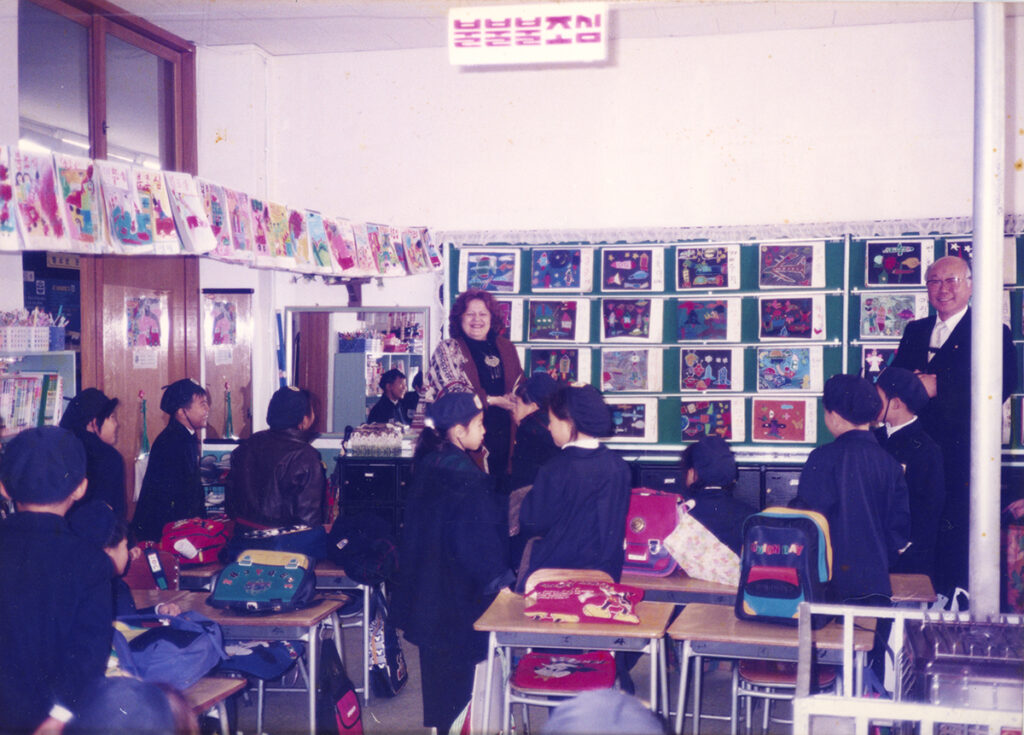 Ana Mae Barbosa em visita a uma escola na Coreia do Sul, 1995 | Acervo Ana Mae Barbosa