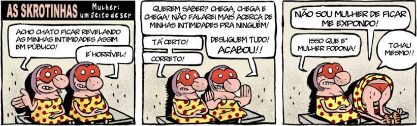 E para os indignados com o completo sumiço da junkie beberrona Angeli explica que a personagem já estava se tornando uma muleta, “quando não sabia o que fazer, desenhava a Rê Bordosa. Sabia que ia fazer sucesso”.