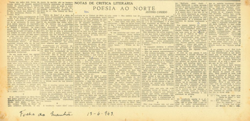 Antonio Candido publicou seu primeiro livro, Brigada Ligeira, em 1945. Na obra, o autor reuniu alguns dos textos que vinha produzindo desde 1943 para a coluna Notas de Crítica Literária, do jornal paulistano Folha da Manhã – foi nesse espaço que o crítico reconheceu o talento de nomes como Clarice Lispector, João Cabral de Melo Neto e João Guimarães Rosa, até então pouco conhecidos.