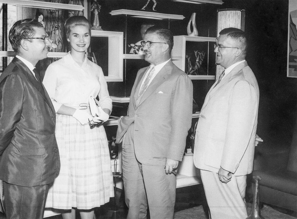 João Artacho Jurado (ao centro) e seu irmaõ, Aurélio, ao lado da Miss Estados Unidos, Eurlyne Howell, 1958 | foto: Miroslav Javurek/acervo família Jurado