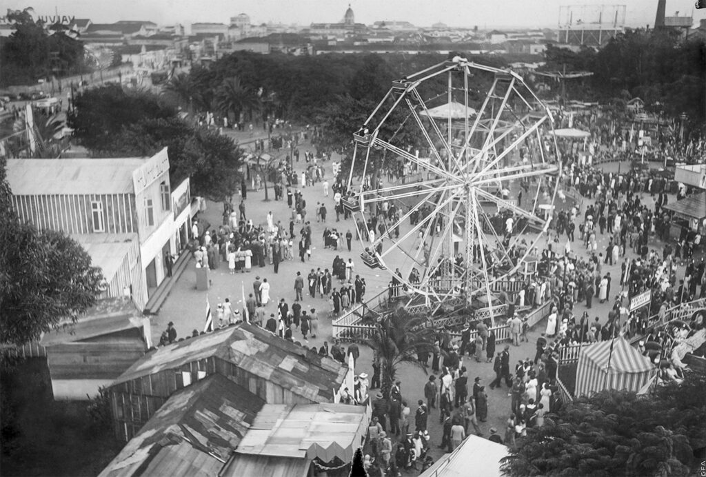 Diva Aratacho Jurado (no canto inferior esquerdo), durante cerimônia de corte da faixa inaugural na Exposição do Centenário de Santos, 1939 | foto: autoria desconhecida/acervo família Jurado