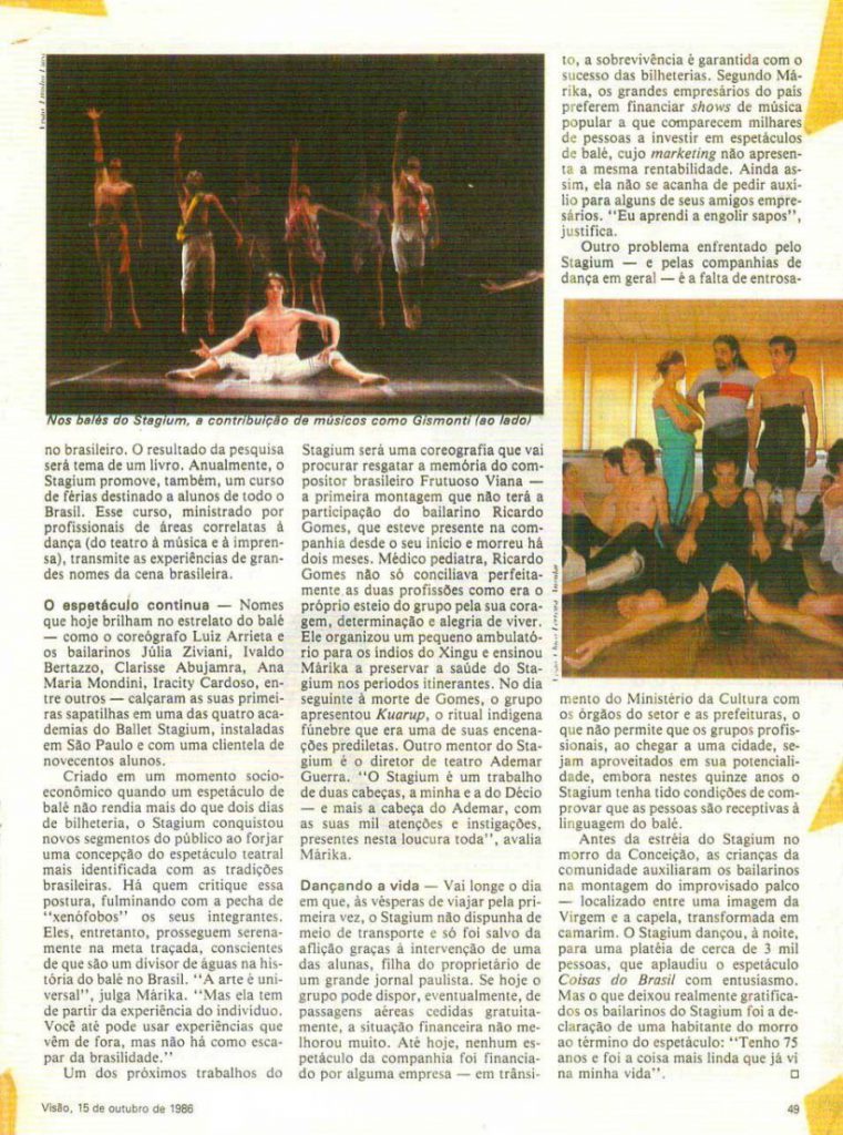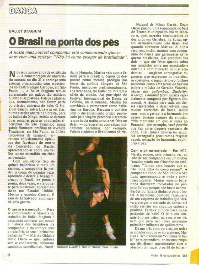 Helena Katz é crítica de dança e professora. Acompanhou o percurso do Stagium ao longo de toda a sua história. Artigos sobre o grupo – e sobre a dança nacional em geral – podem ser lidos em seu site: www.helenakatz.pro.br .