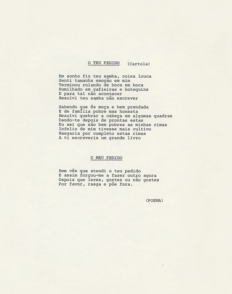 Os manuscritos e os datiloscritos apresentados a seguir são alguns dos poemas que comporiam o livro planejado por Cartola.