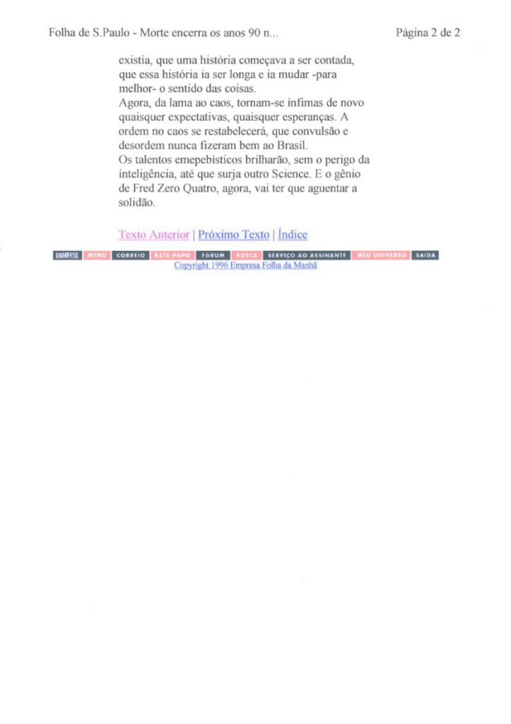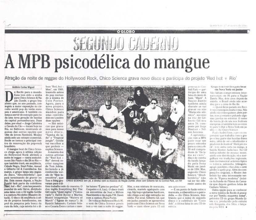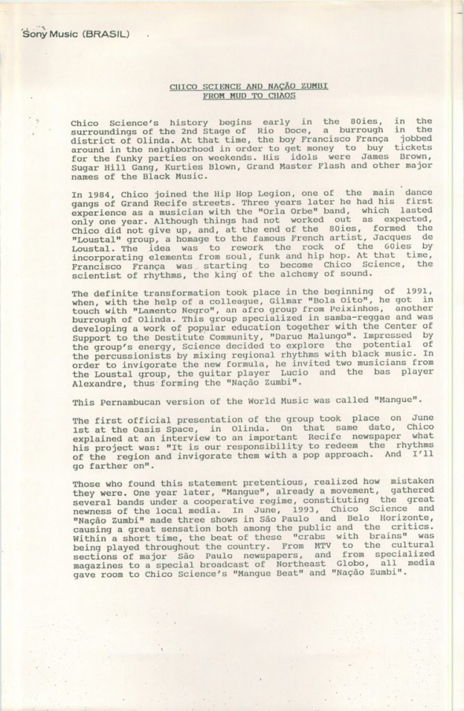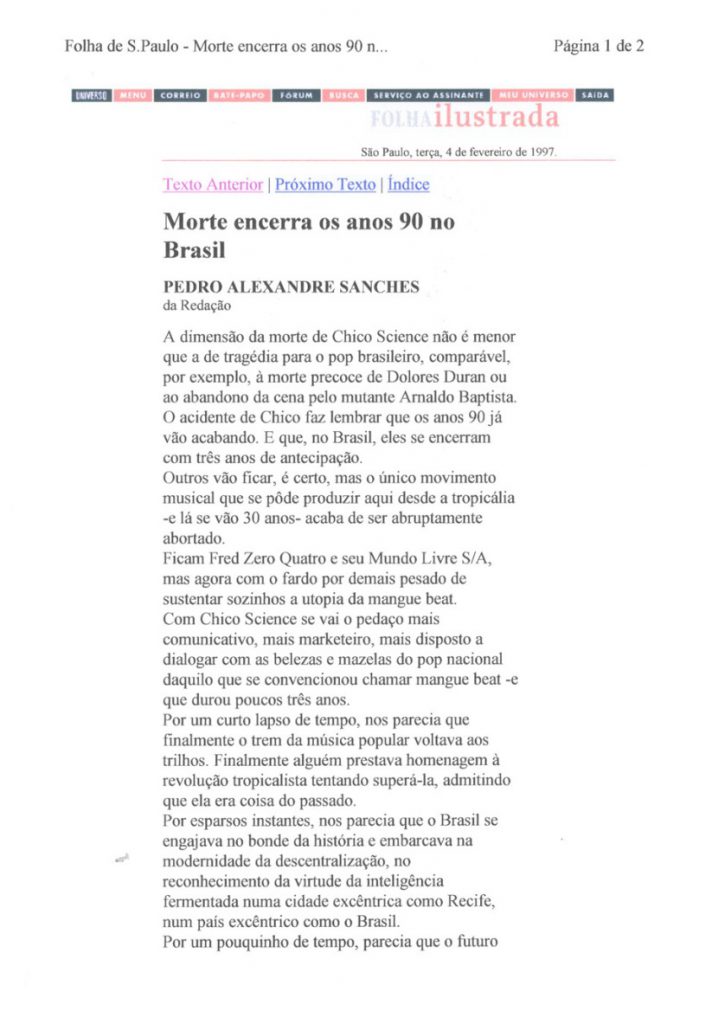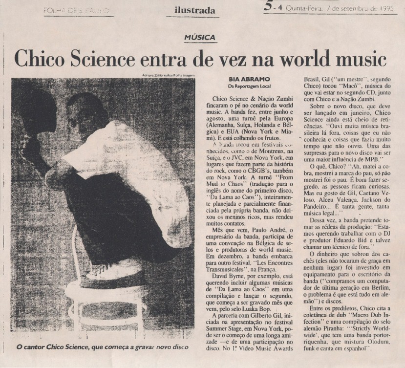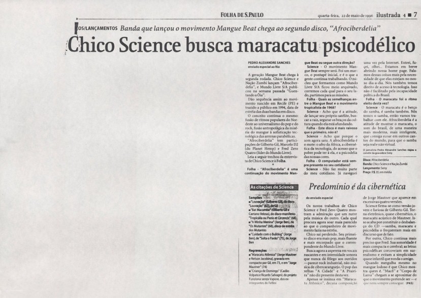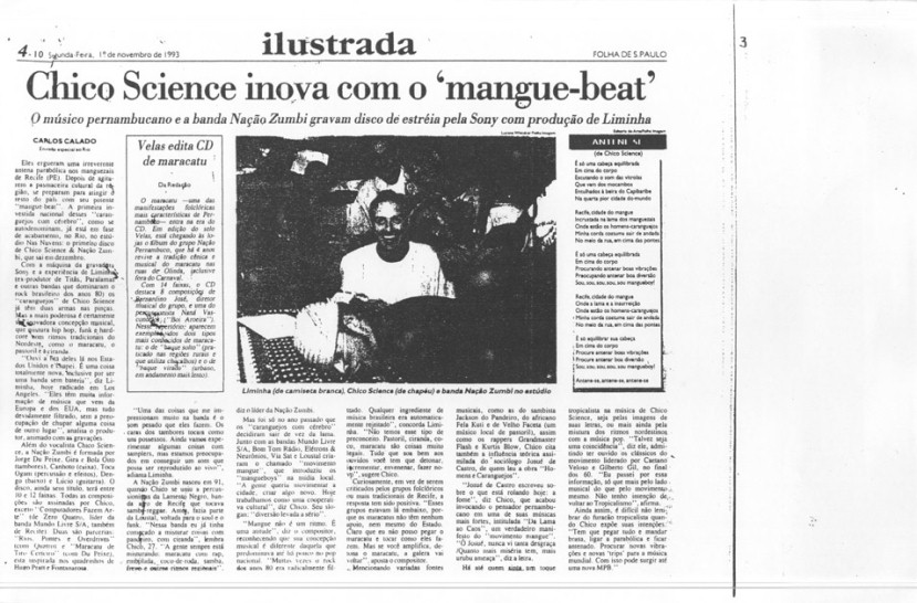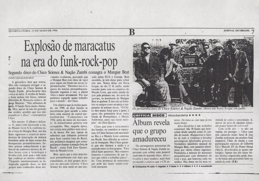 Além do sucesso de público, Chico Science teve a oportunidade de ver seu trabalho com a Nação Zumbi repercutir positivamente nas mídias nacional e internacional. As publicações selecionadas aqui trazem uma amostra do barulho que a banda fez entre os anos de 1991 e 1997. Os periódicos retratam o momento em que a mídia brasileira voltou sua atenção para o Recife. E, pouco a pouco, os espaços que a imprensa internacional também foi abrindo.
