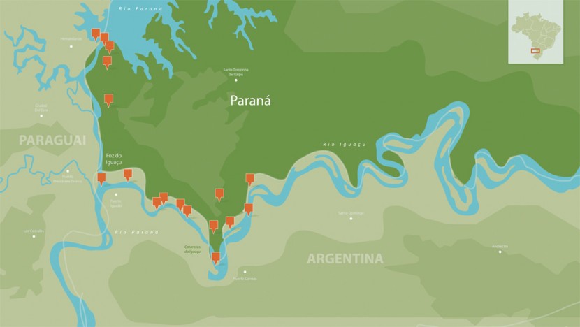A usina hidrelétrica de Itaipu, localizada na fronteira entre o Brasil e o Paraguai, fornece 19% da energia consumida no Brasil e 90% da utilizada no Paraguai. A região alagada para sua construção possui 1.350 quilômetros quadrados.