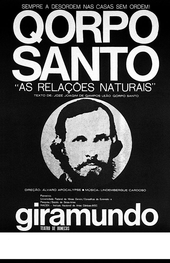 O Grupo Giramundo, de Belo Horizonte, nosso conhecido pelo belíssimo Cobra Norato, nos trouxe novo espetáculo de bonecos, desta vez com marionetes manipuladas por fios, técnica difícil e pouco conhecida entre nós, com um texto que parecia pouco adequado, nada menos que As Relações Naturais, de Qorpo Santo, o surpreendente autor gaúcho do passado, precursor do surrealismo. Álvaro Apocalypse, o diretor, e todos os integrantes do Giramundo conseguiram, entretanto, tal expressividade e definição psicológica, ao lado de grande beleza visual, que se acredita que Qorpo Santo escreveu seu texto pensando em bonecos. Um espetáculo que nos faz confiar na força criativa do teatro brasileiro.