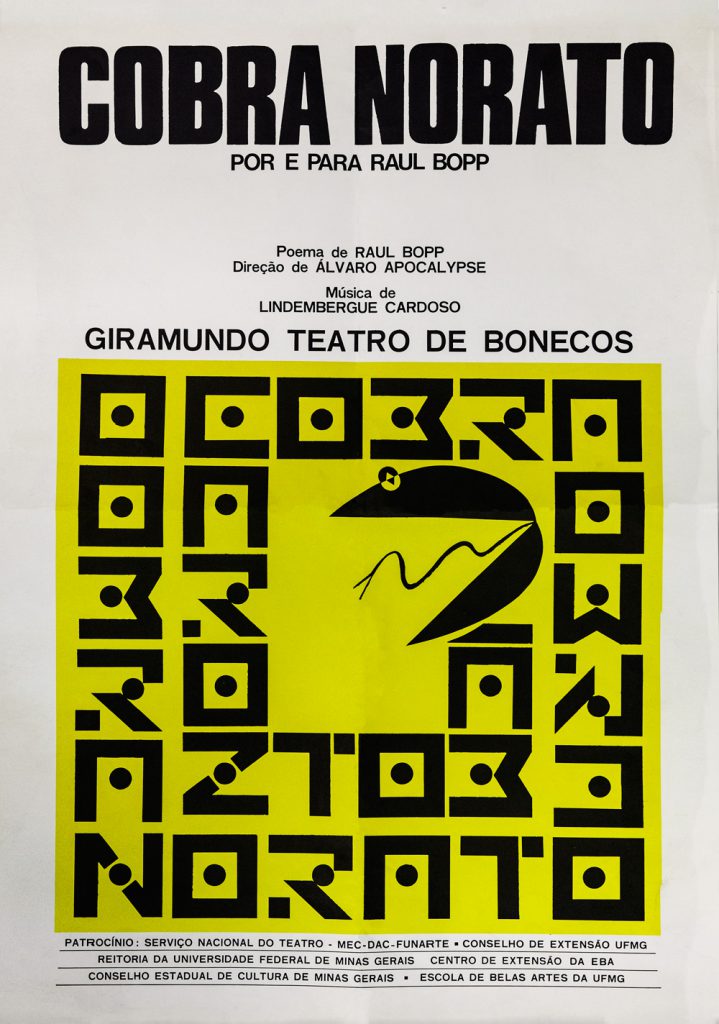 (…) Em uma semana de apresentação, no verão de 1979, o público carioca assistiu a um espetáculo, pelo Giramundo, na qual a obra de Raul Bopp não só conseguiu a sua perfeita transcrição para o teatro como encontrou a linguagem dos bonecos uma expressão poética que redimensiona essa técnica no Brasil. Álvaro Apocalypse, diretor de Cobra Norato e do Giramundo, conta com o belo mito serpentário da Amazônia, reunindo uma excepcional equipe de manipuladores, iluminadores, músicos e confeccionistas das dezenas de bonecos em cena, num espetáculo em que o espectador fica fascinado com a vida dessas figuras de pano. Os mitos das lendas amazônicas se desdobram em movimentos delicados – os bonecos são manipulados com muita destreza, além do que ajudados por uma iluminação de nível internacional. Mas a ação é sempre vigorosa. Cobras que se transformam em rapazes, ou a Boiuna engravidando índias, e ainda crianças se transformando em cobra, tudo mostrado numa narrativa mágica. O poema de Raul Bopp, escrito em 1921, é obra definitiva, e o espetáculo de bonecos do Giramundo é um marco da história do teatro brasileiro contemporâneo.