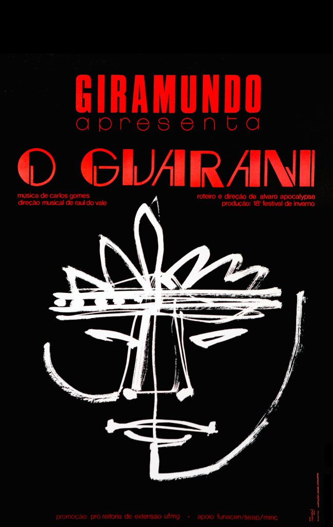 Sugerido por José Adolfo Moura, o espetáculo é uma releitura livre e criativa da ópera, na qual Álvaro Apocalypse carregou na mensagem política, direcionando sua crítica principalmente à violência contra as nações indígenas. Foi produzido no Festival de Inverno da UFMG, na cidade de São João del-Rei, em 1986, ano do sesquicentenário de nascimento de Carlos Gomes. Mais um desafio para o Giramundo – sua segunda incursão no mundo da ópera –, ligado tradicionalmente ao teatro de marionetes e onde se tem nutrido largamente, como é exemplo a Ópera de Salzburg. O Guarani representava, também, mais uma oportunidade de abordar questões sociais e políticas, decorrentes da reflexão suscitada pela obra matriz – o romance de José de Alencar – e a ópera, como frutos do romantismo que tratava a questão indígena sob o ponto de vista do colonizador.