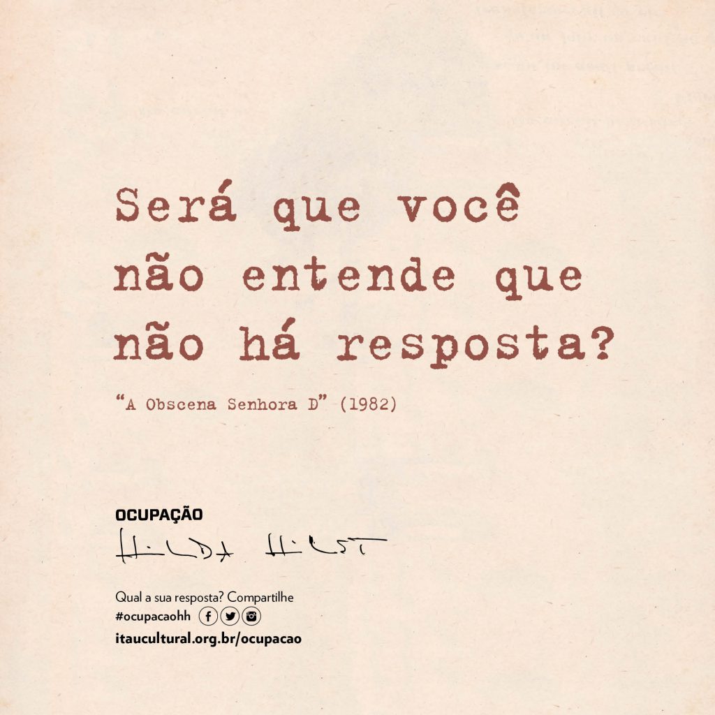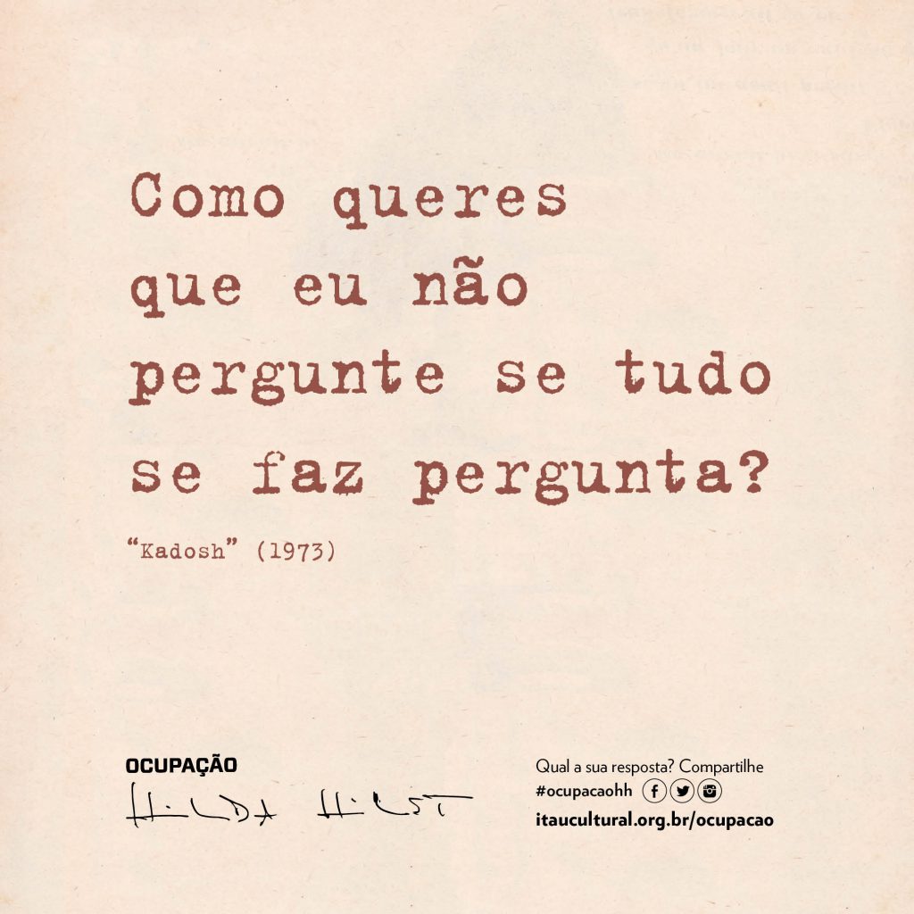 Destacamos algumas das perguntas presentes na obra hilstiana nesta seção. Qual é sua resposta? Compartilhe nas redes sociais com a hashtag #ocupacaoHH.
