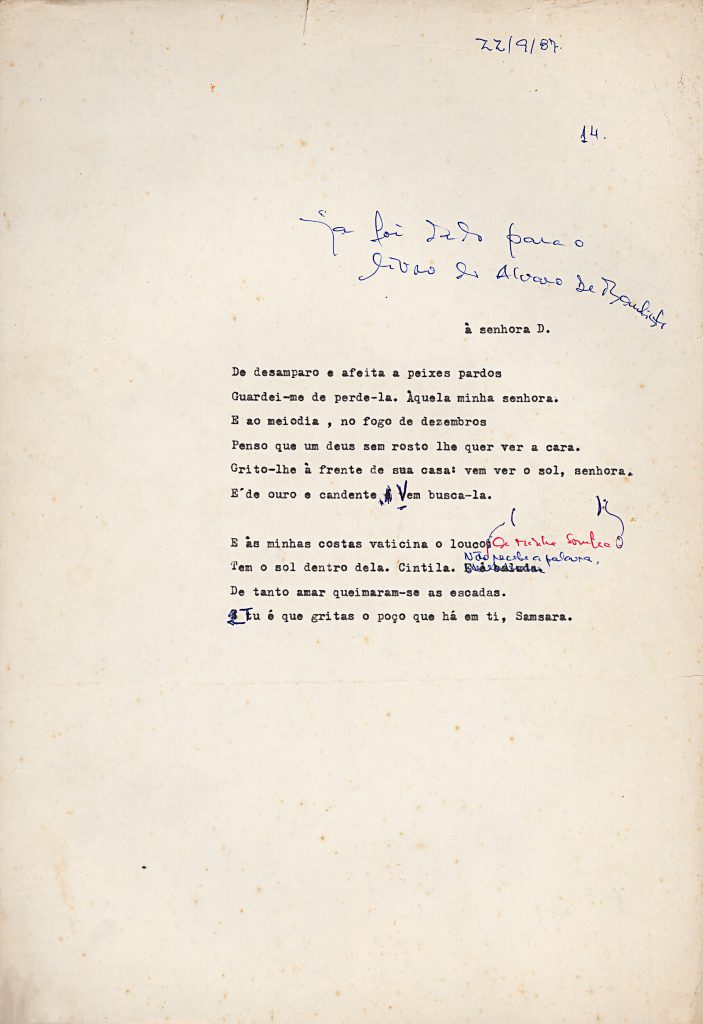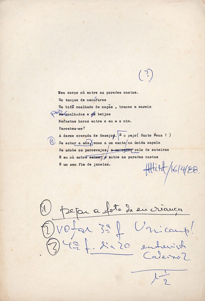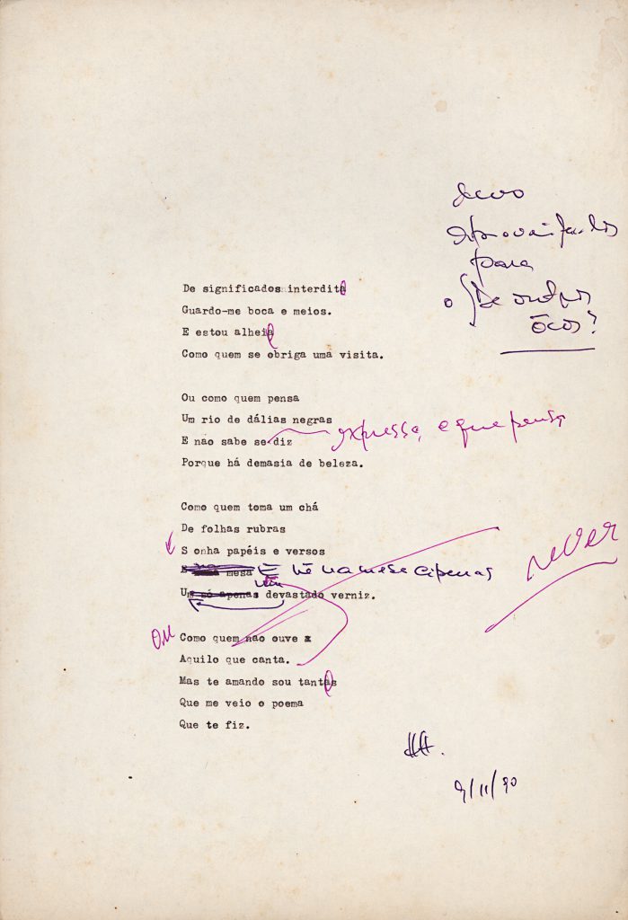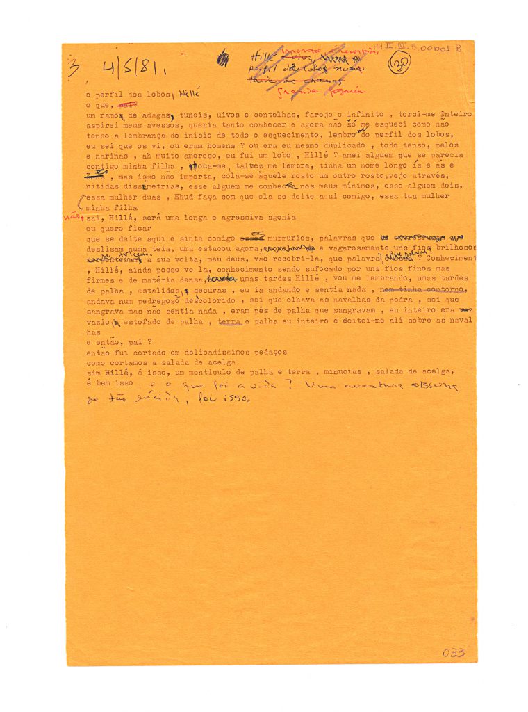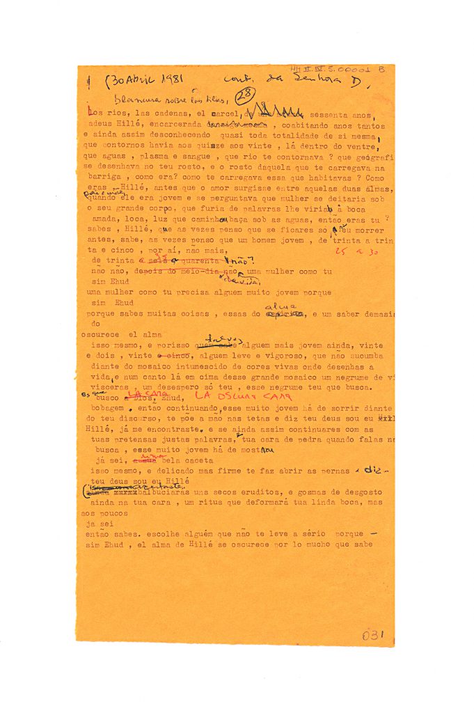 Esta seção é um vislumbre dessa disciplina, por meio de versões prévias dos livros publicados e de anotações em agendas. A obra de Hilda “sendo” produzida.