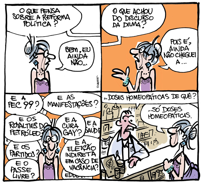 As preocupações políticas transparecem, desde o início da carreira, na produção de Laerte, que foi também fundador da OBORÉ – agência de comunicação voltada ao sindicalismo e a movimentos sociais e fincada, segundo Sergio, no “empenho pela causa pública, empenho político, através do desempenho profissional”. Laerte produziu desenhos pela Anistia e pelas Diretas Já, entre outras atividades. Seu olhar para a temática pública continua até hoje.