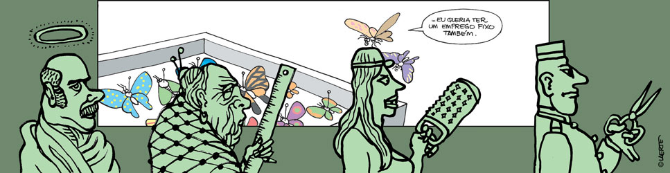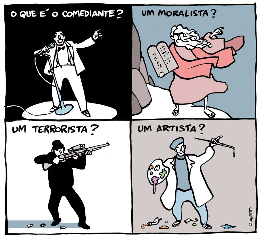 Para ser sincero, estou achando o seguinte: você é o Laerte e eu não sou. Nós dois viveremos muito bem e teremos uma excelente relação profissional se os mesmos limites que se aplicam normalmente ao trabalho se aplicarem a essa conversa.
