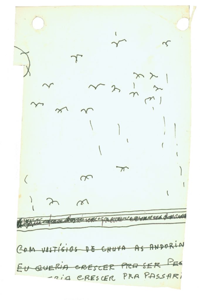Rascunho (à esquerda) e versão final de poema publicado no livro Retrato do Artista Quando Coisa (1998):