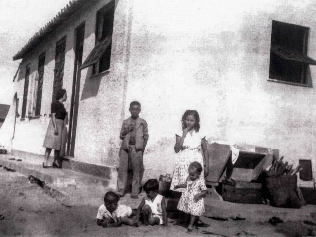 1947: os irmãos Roberto, Clara e Maria Bethânia, esta com 1 ano de idade, brincando com amigos na rua em Santo Amaro (BA) | imagem: autoria desconhecida/acervo Neide de Jesus