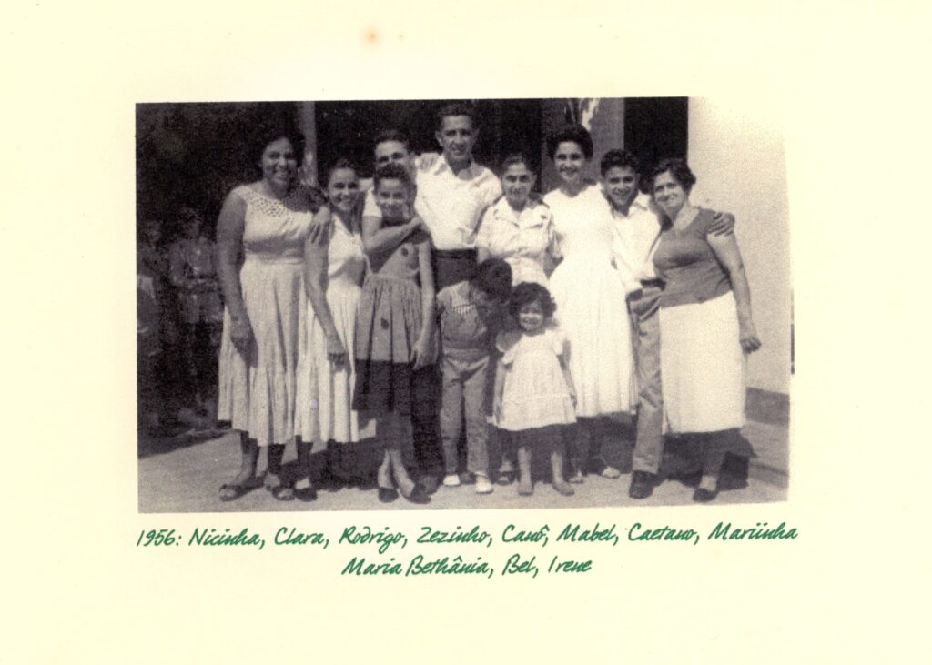 1956: Nicinha, Clara, Rodrigo, Zezinho, Dona Canô, Mabel, Caetano e Mairiinha (da esquerda para a direita, na fileira de trás). Maria Bethânia, Bel e Irene (na frente) | imagem: autoria desconhecida/acervo da família