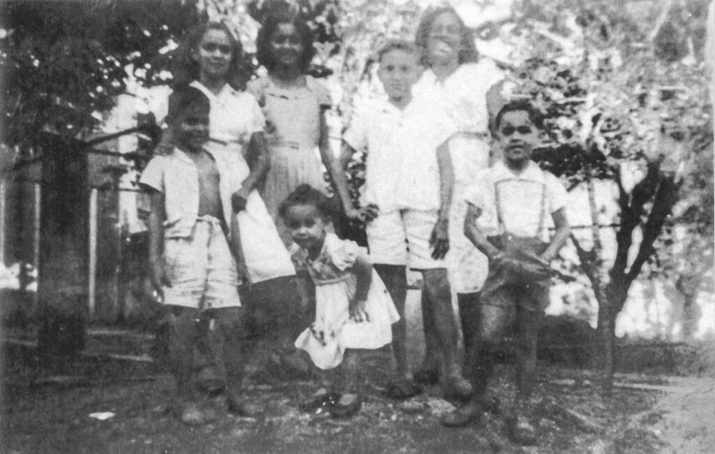 1948: irmãos reunidos – Roberto, Mabel, Clara Maria, Rodrigo, Nicinha, Caetano e Maria Bethânia | imagem: autoria desconhecida/acervo de Mabel Velloso