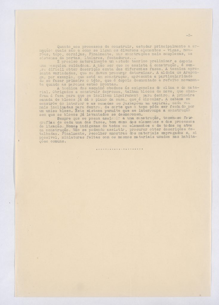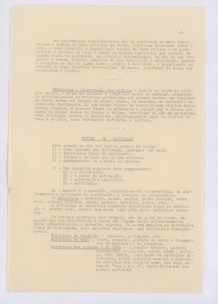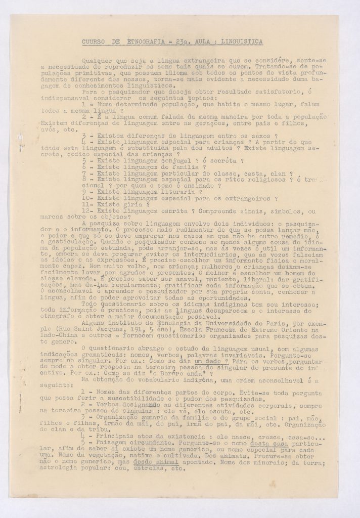 “(…) A Etnografia brasileira vai mal. Faz-se necessário que ela tome imediatamente uma orientação prática baseada em normas severamente científicas. Nós não precisamos de teóricos, os teóricos virão a seu tempo. Nós precisamos de moços pesquisadores que vão à casa recolher com seriedade e de maneira completa o que esse povo guarda e rapidamente esquece, desnorteado pelo progresso invasor (…)”