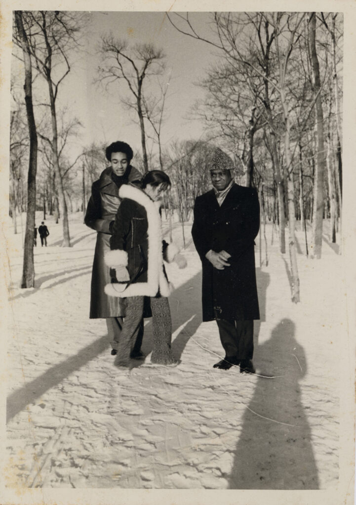 Milton Santos com seu filho Miltinho e Marie-Hélène, esposa do geógrafo, em Montreal, no Canadá, 1971 | acervo da família