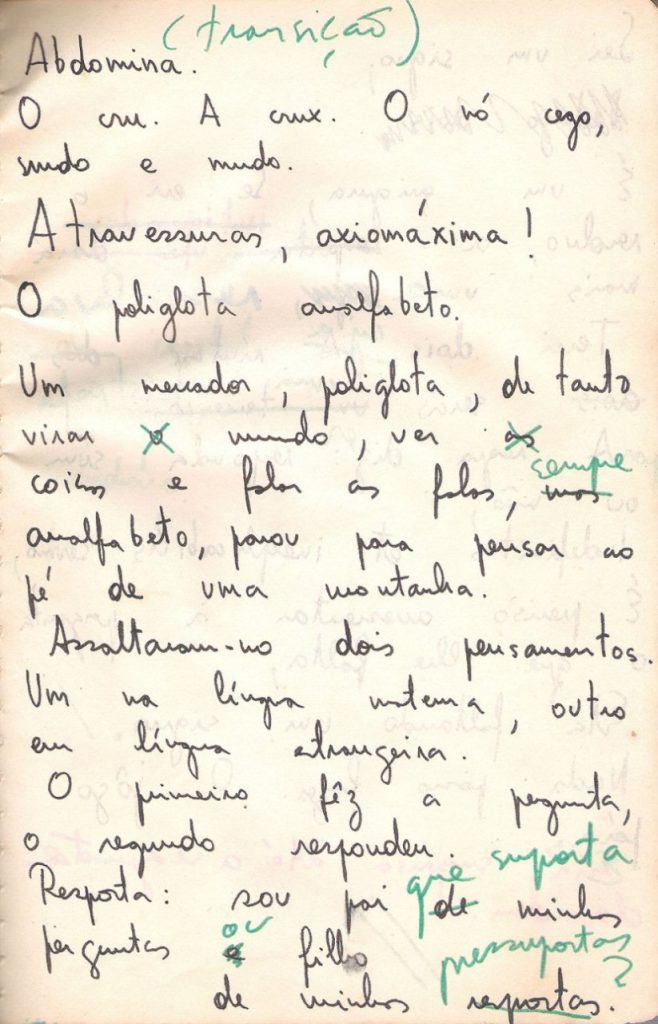 Livro mais complexo de Paulo Leminski, o romance em prosa poética – também autointitulado romance-ideia – Catatau é ainda um livro pouco visitado. Aqui, você conhece algumas das páginas manuscritas pelo próprio Leminski em seu exercício de criação, espécie de laboratório do que viria a ser esse livro.
