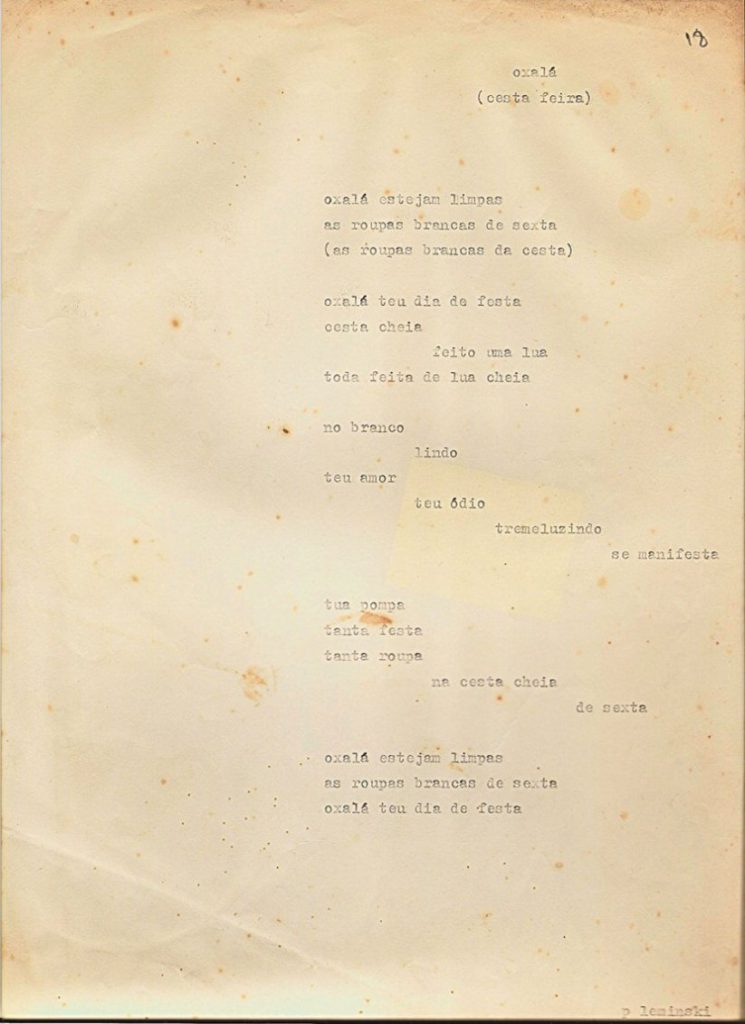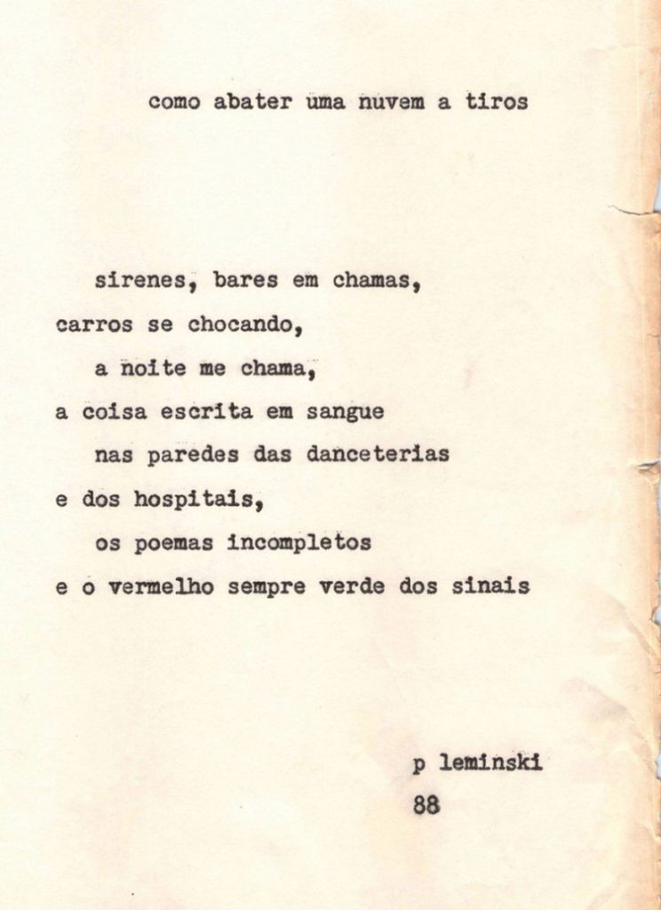 Original datilografado do poema, publicado no livro póstumo La Vie En Close, de 1991 | imagem: arquivo da família Leminski]