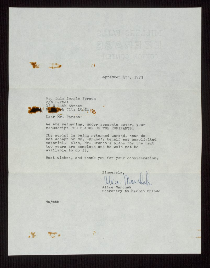 “Person morava no sítio, mas passava alguns dias da semana em São Paulo, cuidando do Auditório Augusta, teatro onde as peças que dirigia eram apresentadas com muito sucesso. Uma noite, Regina ligou aflita: o marido não tinha voltado para o sítio nem era encontrado em São Paulo. Mara e Regina procuraram por ele em toda parte; foram a hospitais, delegacias e até ao Instituto Médico Legal. Só o encontrariam dias mais tarde, no Hospital das Clínicas, internado como indigente. Havia acabado de morrer. Person não costumava andar com documentos. Bebeu, pegou carona com um sujeito que tinha acabado de conhecer num bar e sofreu o acidente na Régis Bittencourt (BR-116), a caminho de Itapecerica. A peça, que terminei de escrever sozinho, nunca seria encenada”.