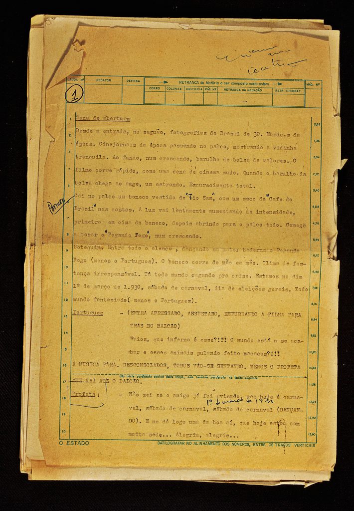 Para começar, foi uma loucura dele me chamar para esse trabalho, pois a gente nem se conhecia e eu era apenas um repórter de jornal, que nunca tinha feito outra coisa na vida. A mulher dele, Regina Jehá, também cineasta, tinha sido minha colega na primeira turma da Escola de Comunicações e Artes da Universidade de São Paulo. Por uma dessas boas coincidências da vida, Person tinha lido uma reportagem minha sobre o Carnaval de 1975, no Estadão (O Estado de S.Paulo), e comentou com ela que eu poderia ser seu parceiro na peça que estava pensando em escrever.