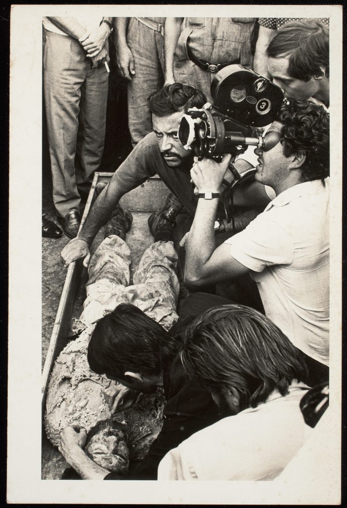 Paulo José (de calção vermelho), Person (de camisa azul) e equipe técnica durante filmagens de Cassy Jones: o Magnífico Sedutor (1972) | Acervo da família Person