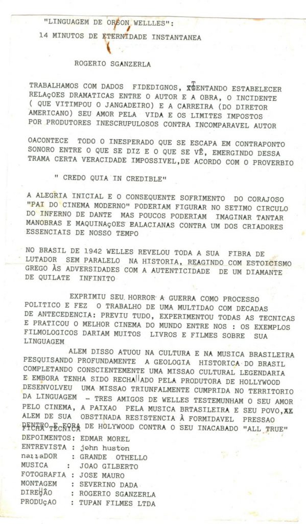 Trecho do filme A Linguagem de Orson Welles (1990)