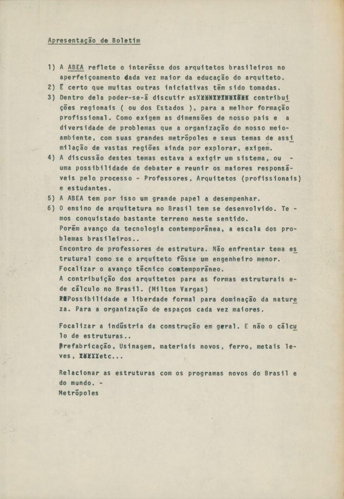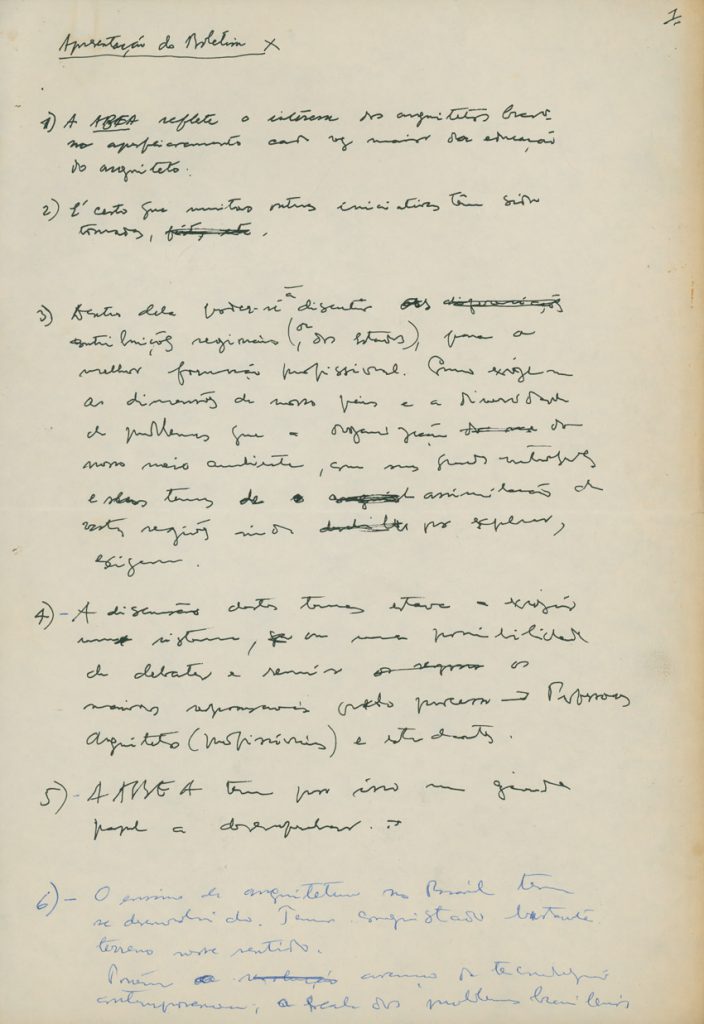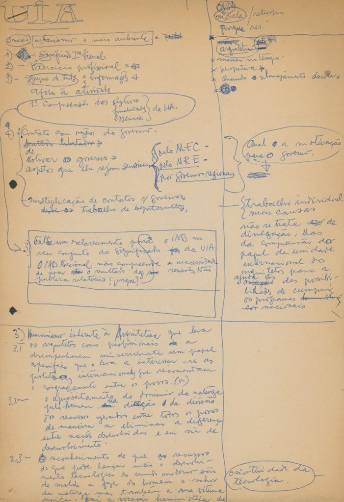 Notas sobre o ensino da arquitetura para uma conferência da União Internacional dos Arquitetos (UIA) e da Unesco | Imagem: Acervo da Família Artigas