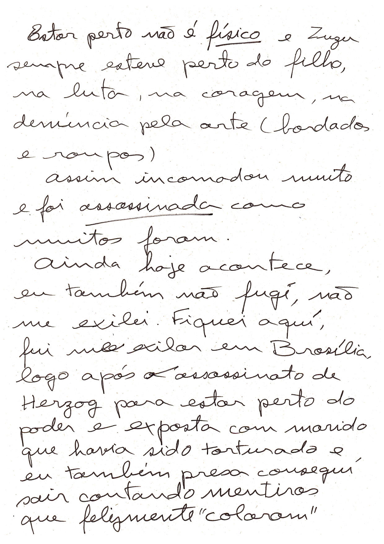 Escrever e costurar são coisas um tanto parecidas. Quem redige uma carta, cerzindo palavras umas às outras, está de certa forma bordando ideias e mensagens no papel. E a estilista Zuzu Angel, homenageada da 17ª edição do programa Ocupação Itaú Cultural, fazia muito dessas duas coisas: enquanto alargava as fronteiras da moda brasileira e se comunicava com o mundo por meio do tecido, da linha e da agulha, ela lançou mão incansavelmente do papel, da tinta e da caneta, ou da máquina de escrever, para entrar em contato com políticos, chefes de estado e outras pessoas que pudessem ajudá-la a encontrar seu filho Stuart, torturado e morto pelos oficiais da ditadura militar.