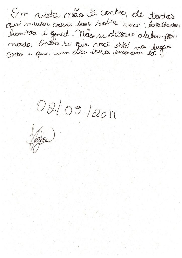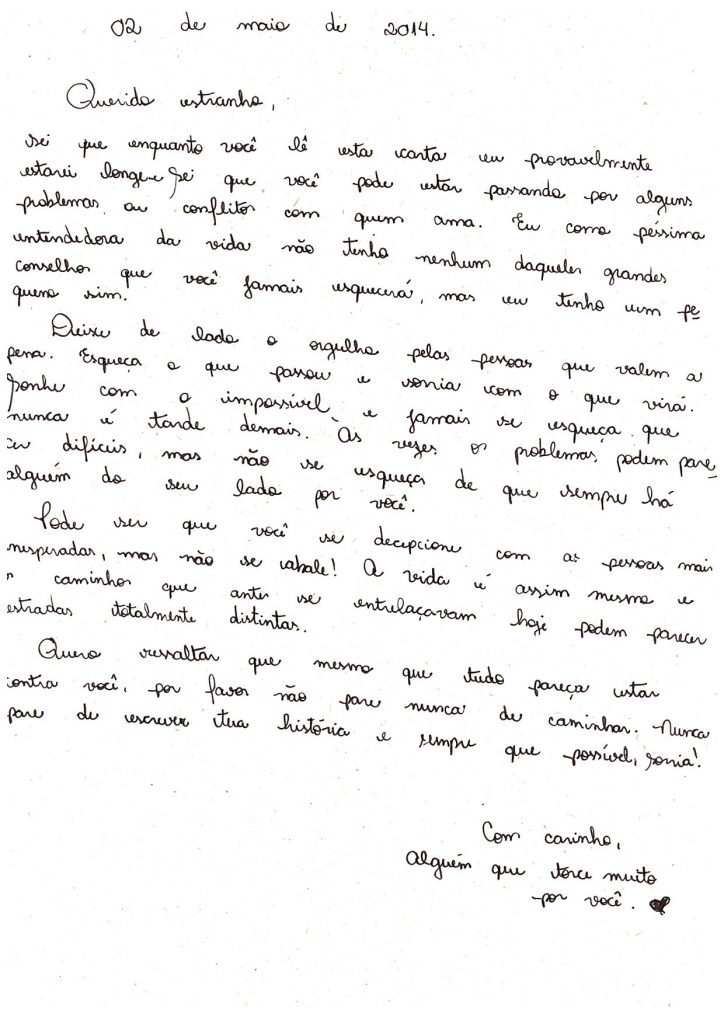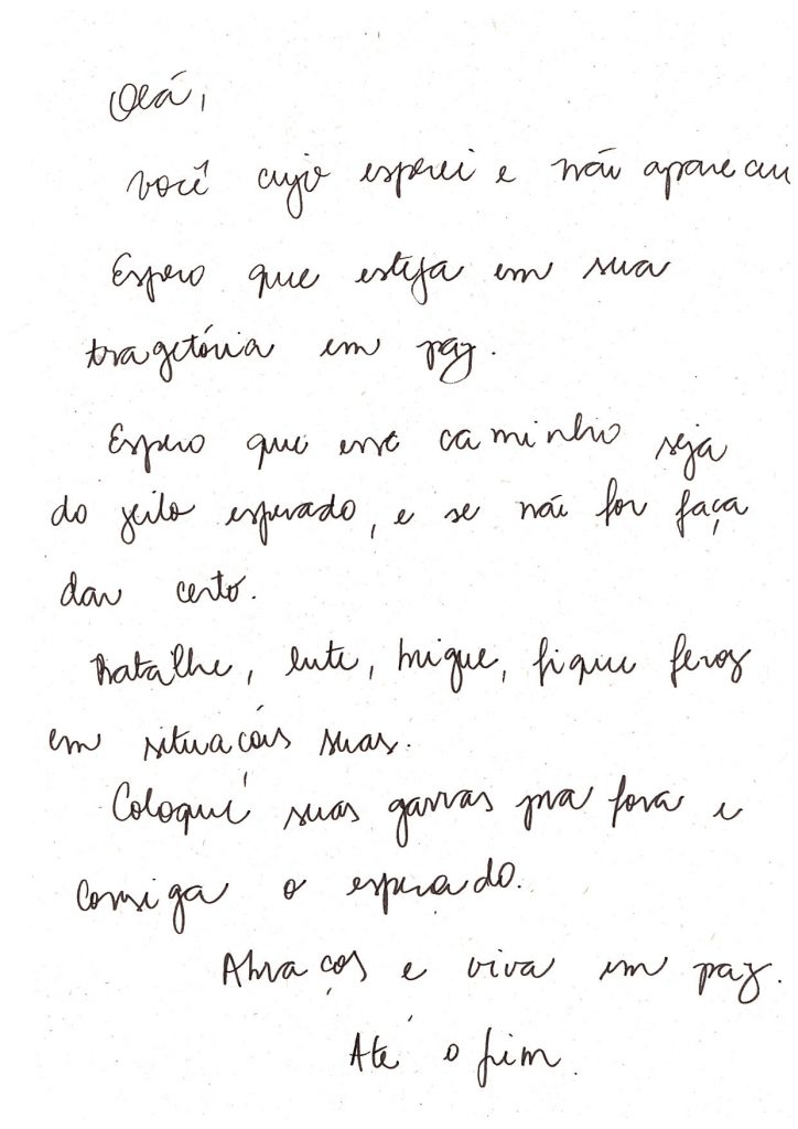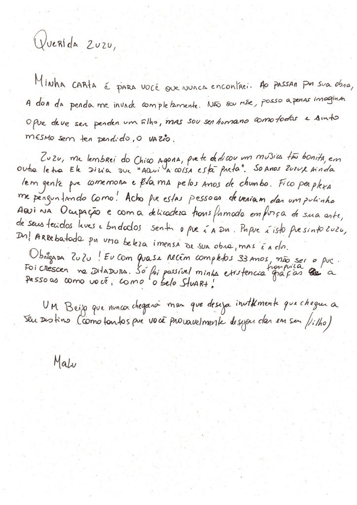 Além de conferir algumas dessas correspondências, o visitante da mostra Ocupação Zuzu foi convidado a escrever cartas para alguém que ele ainda não encontrou ou conheceu. Durante o período da exposição elas foram deixadas no espaço expositivo para que outras pessoas pudessem lê-las. Agora todas as mensagens escritas pelos visitantes estão publicadas no site.